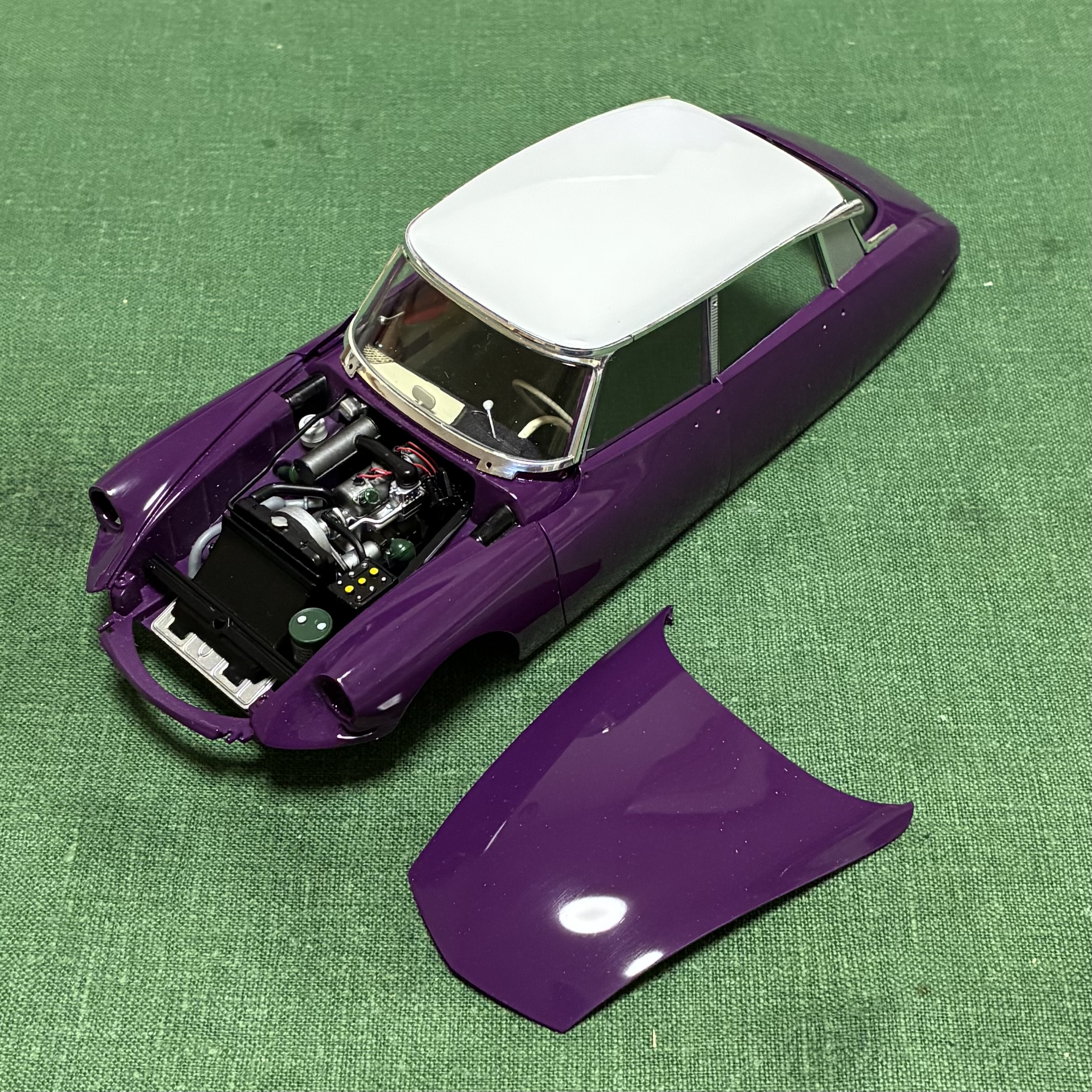 主要パーツ仮組み完了。シトロエンDSは普通の車とはかなり構造が違うのでやむを得ませんが、すこし手こずりました。