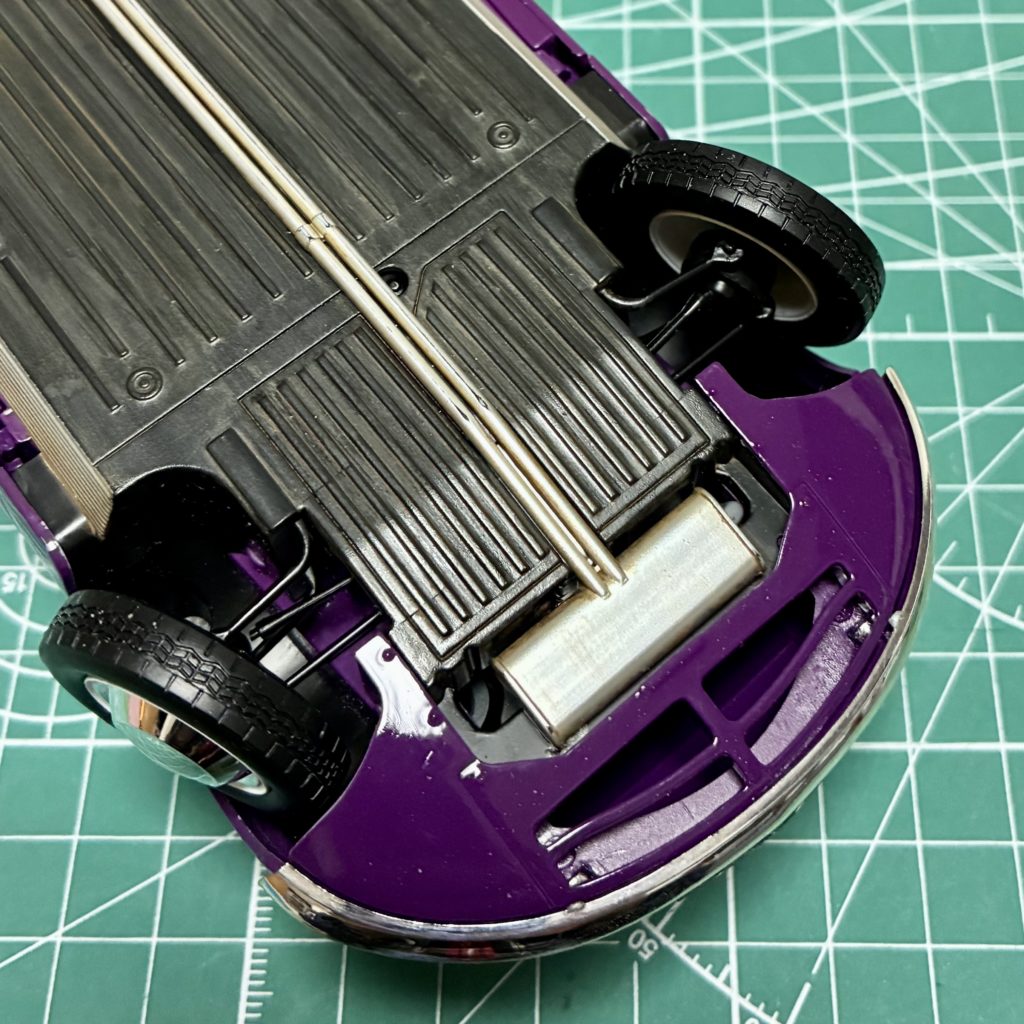 ルーフはホワイトで、ボディはTS-37 ラベンダーで塗装。実車にはない色ですが、昔模型雑誌で見かけた作例に惚れ込んでこの色に決めました。