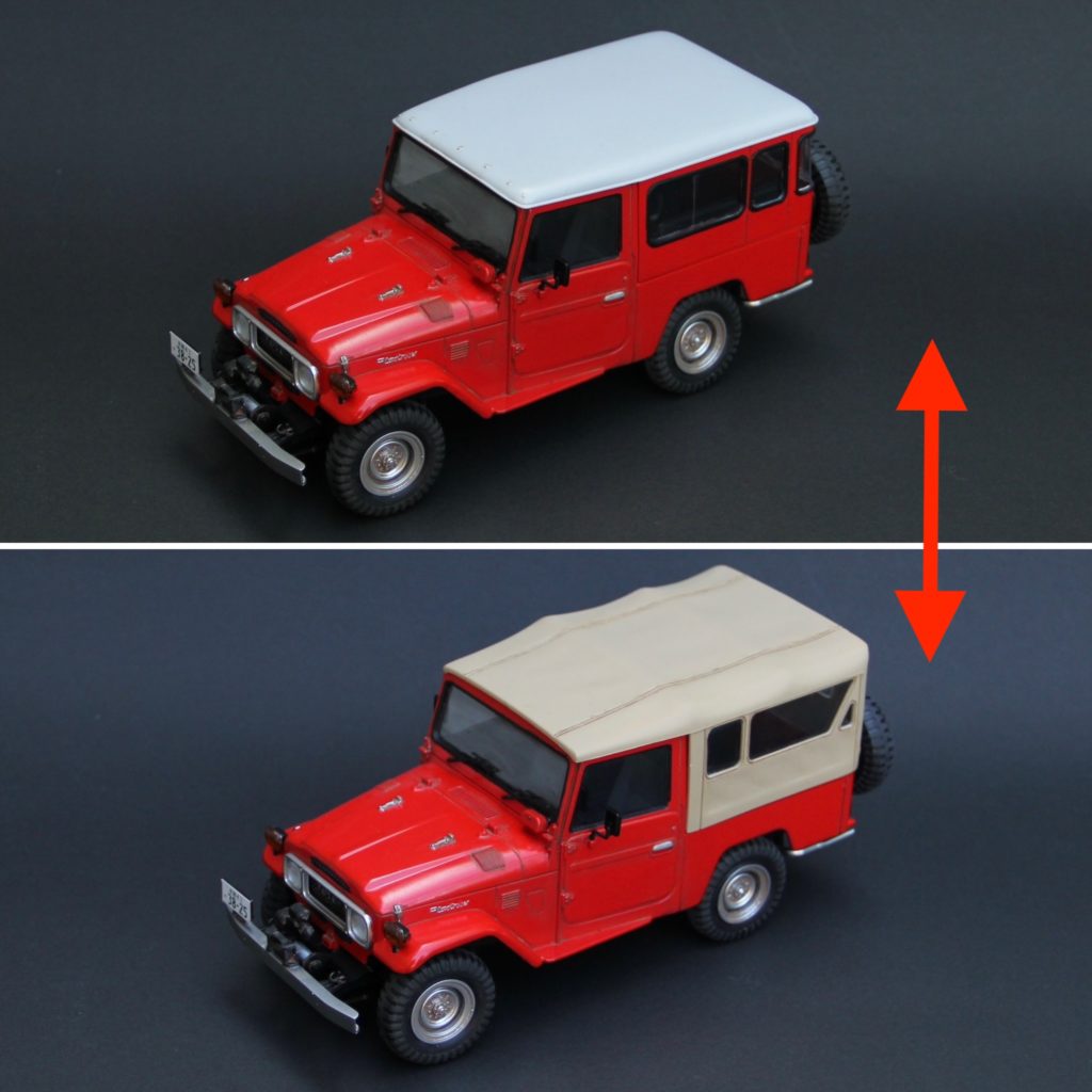 かえる工房はこの手の車にはあまり興味がなかったのですが、ランクルの製作依頼を何件もいただいて、実車について研究するうちにだんだん興味が出てきました。特に40系は現代の車と違ってシンプルで荒々しいところが魅力的ですが、パワステもエアコンもなく実際に手に入れてもすぐに手離すことになりそうです😆😆😆・・・ランドクルーザーはバリエーションがたくさんあって区別がややこしいのですが、形式番号「BJ44」というのは40系ボディに2B型 3,168cc 直列4気筒ディーゼルエンジンを積んだミドルホイールベースモデルということになるのでしょうか?