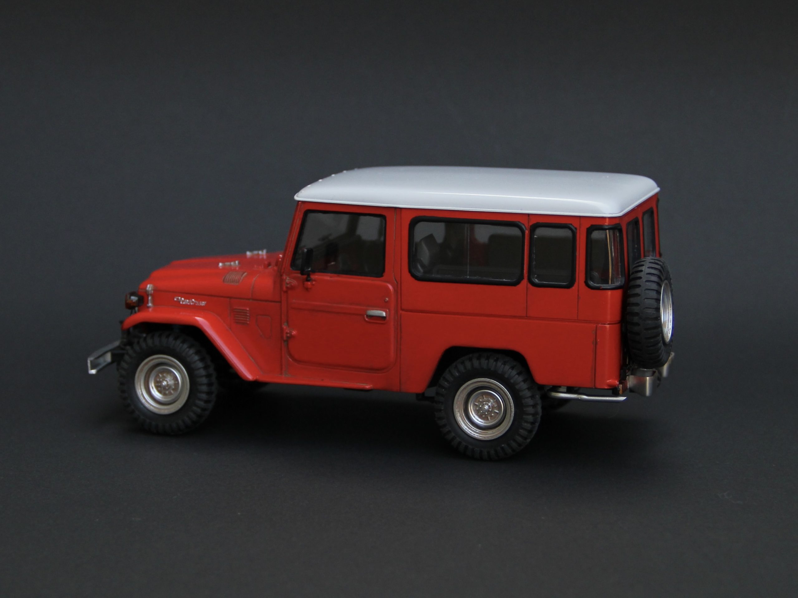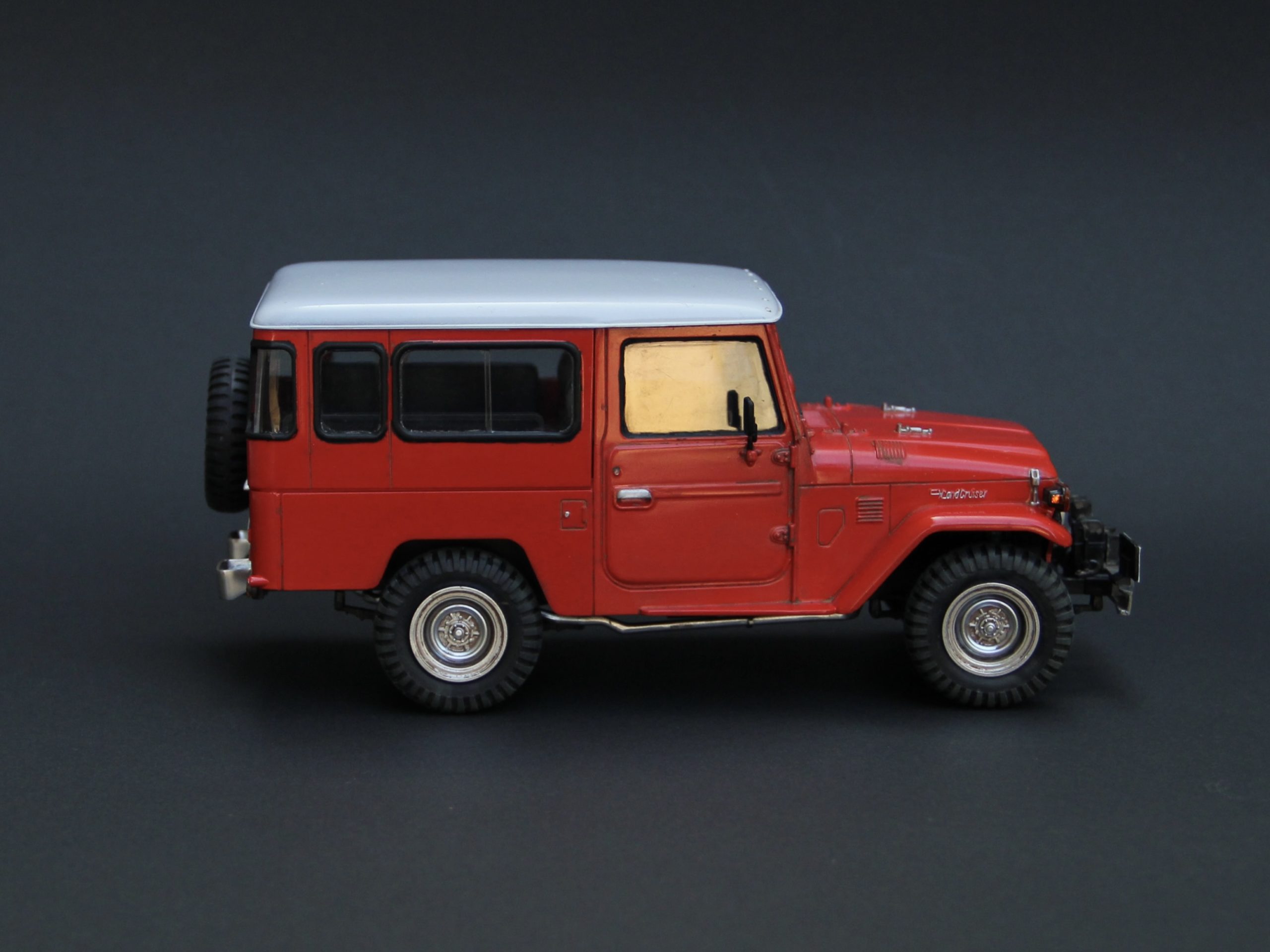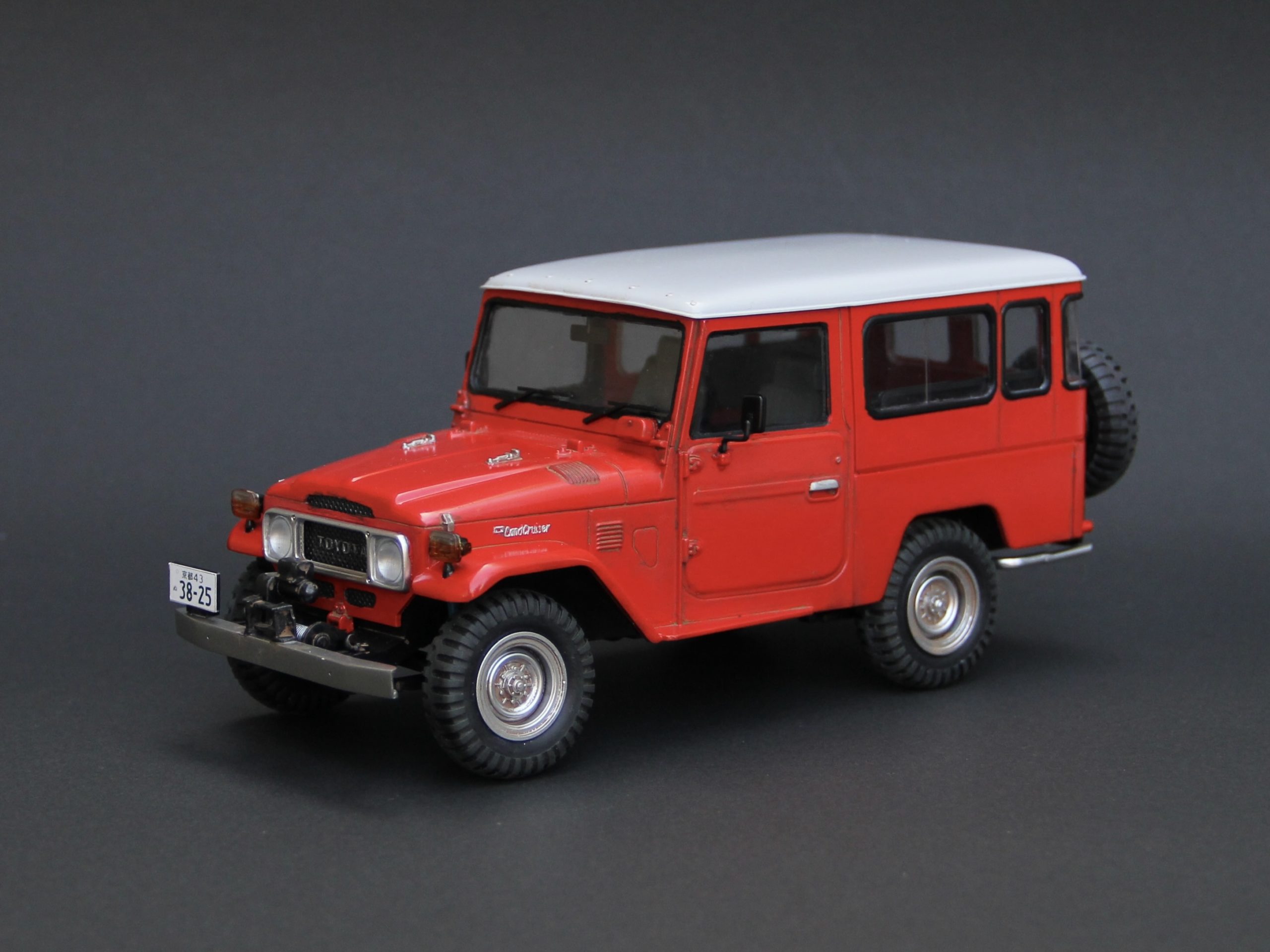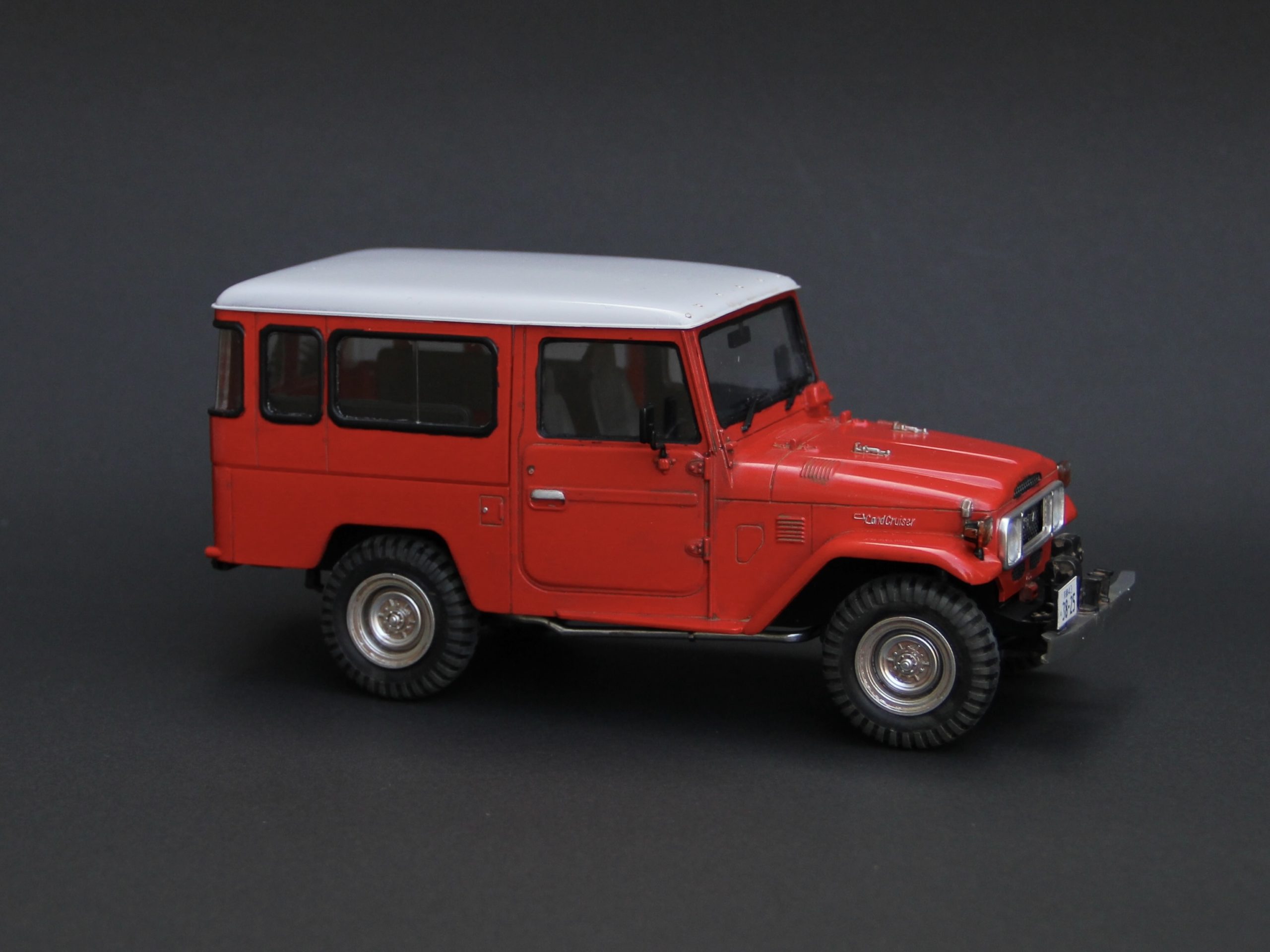 かえる工房はこの手の車にはあまり興味がなかったのですが、ランクルの製作依頼を何件もいただいて、実車について研究するうちにだんだん興味が出てきました。特に40系は現代の車と違ってシンプルで荒々しいところが魅力的ですが、パワステもエアコンもなく実際に手に入れてもすぐに手離すことになりそうです😆😆😆・・・ランドクルーザーはバリエーションがたくさんあって区別がややこしいのですが、形式番号「BJ44」というのは40系ボディに2B型 3,168cc 直列4気筒ディーゼルエンジンを積んだミドルホイールベースモデルということになるのでしょうか?