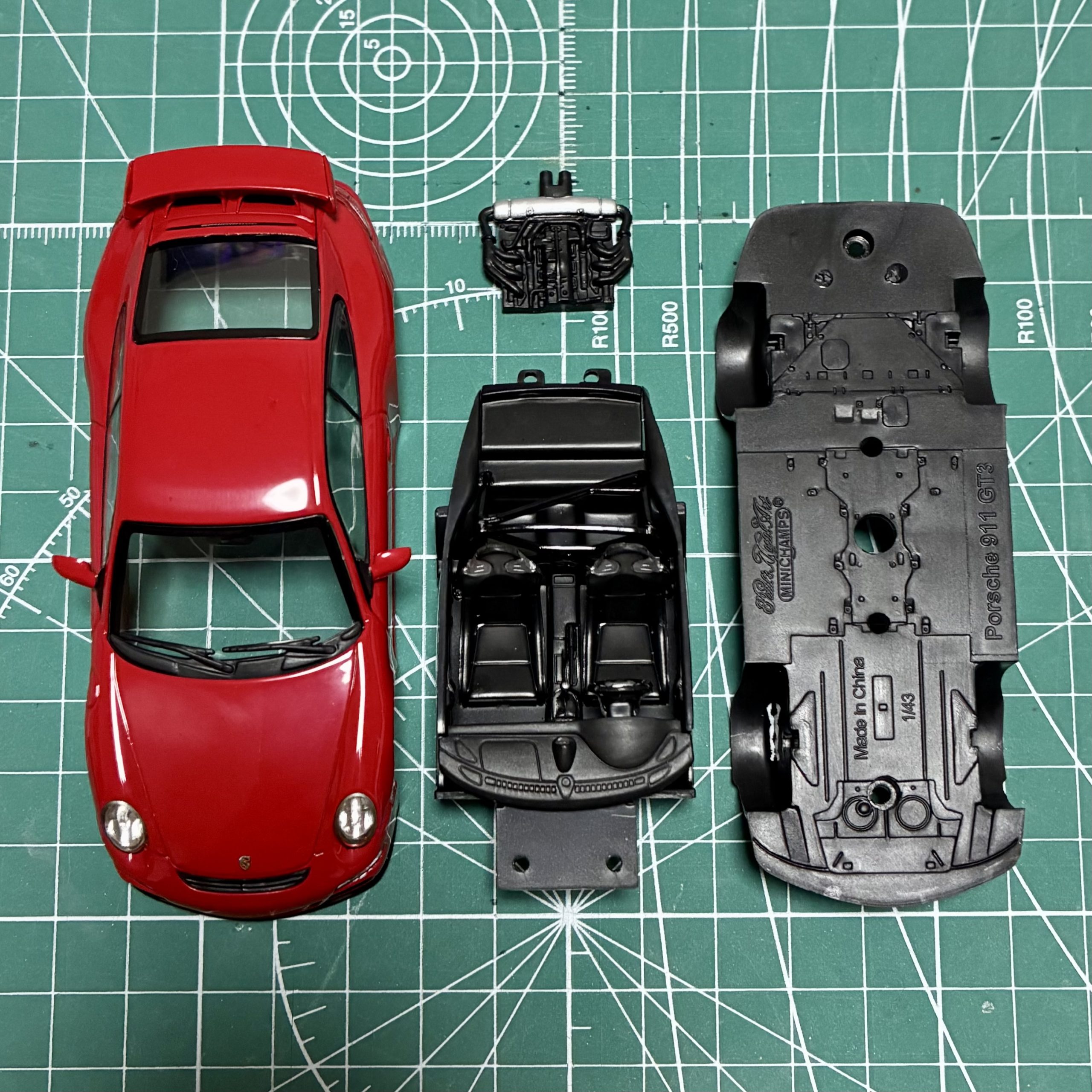 またまたミニチャンプスのポルシェ911GT3リペイント依頼が入りましたが、こちらは1/18スケールの8代目992型です。911シリーズは車名と型式名が似ていて紛らわしいのですが、5代目が996型、6代目が997型なのに7代目が991型となぜか数が減っていてこれも混乱の原因となっています。ドイツ人は優秀だと思っていましたが、実はけっこうバカなのでしょうか?