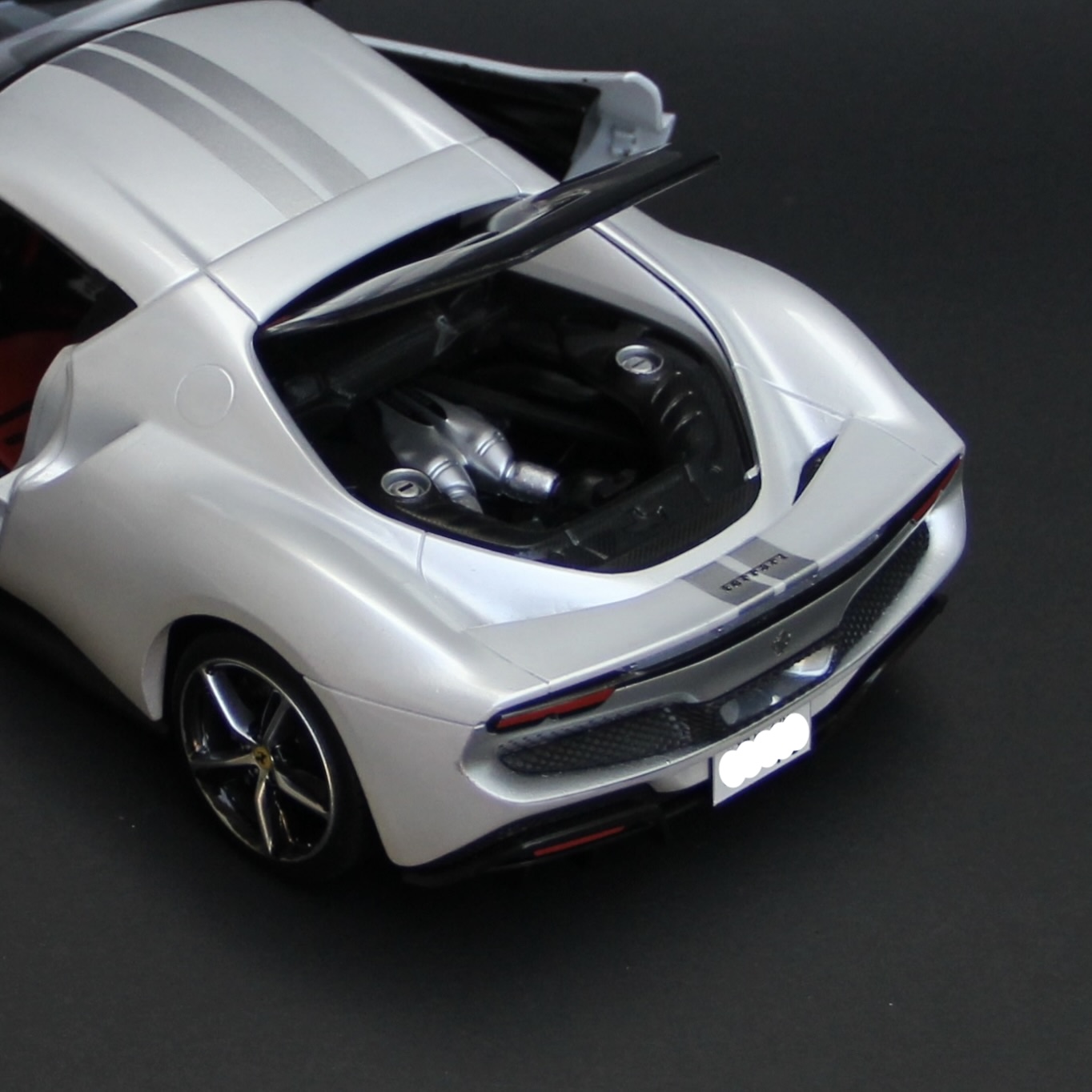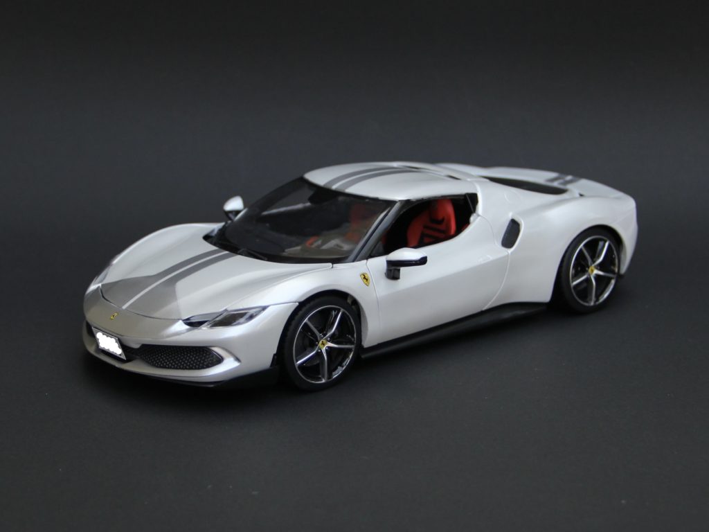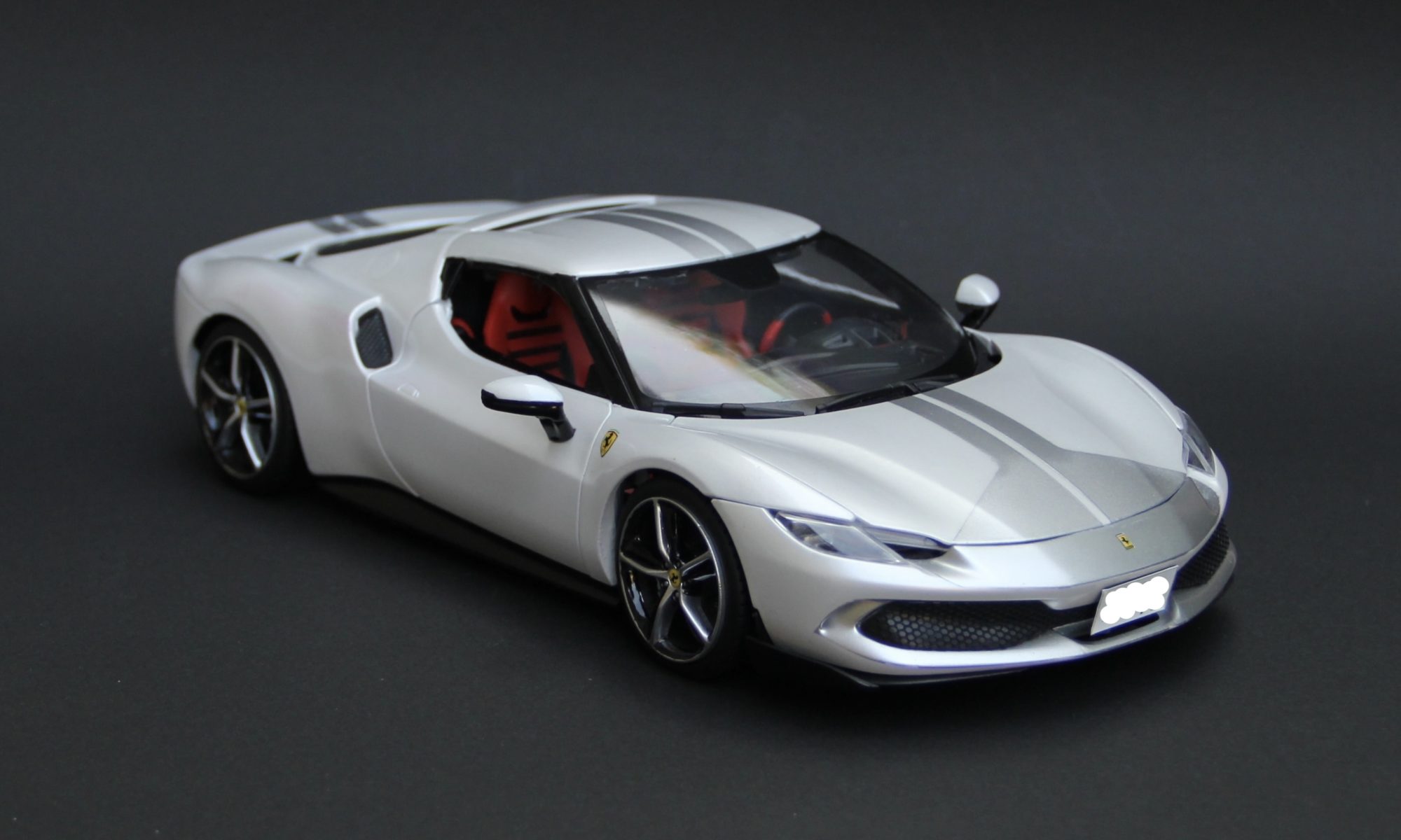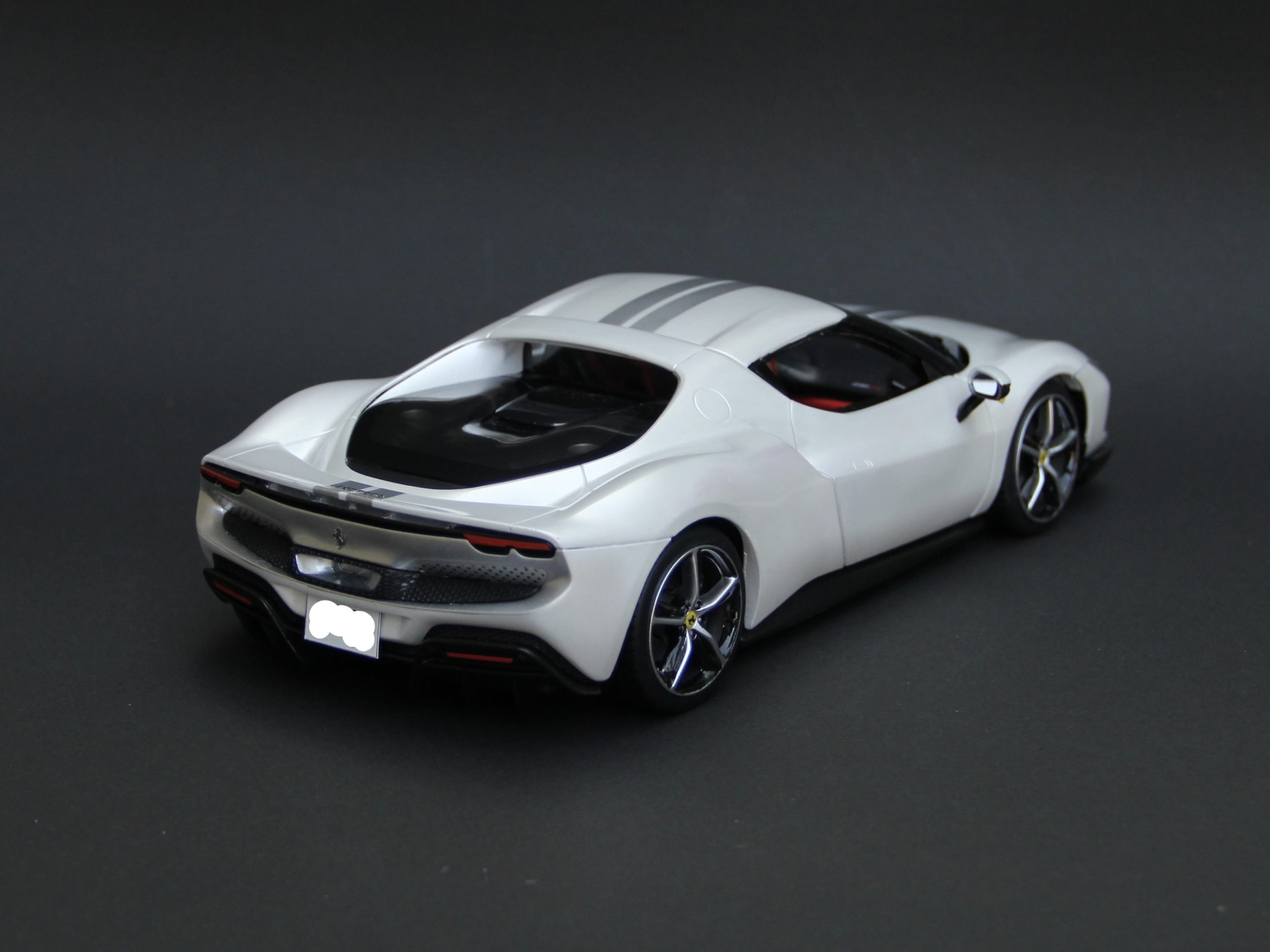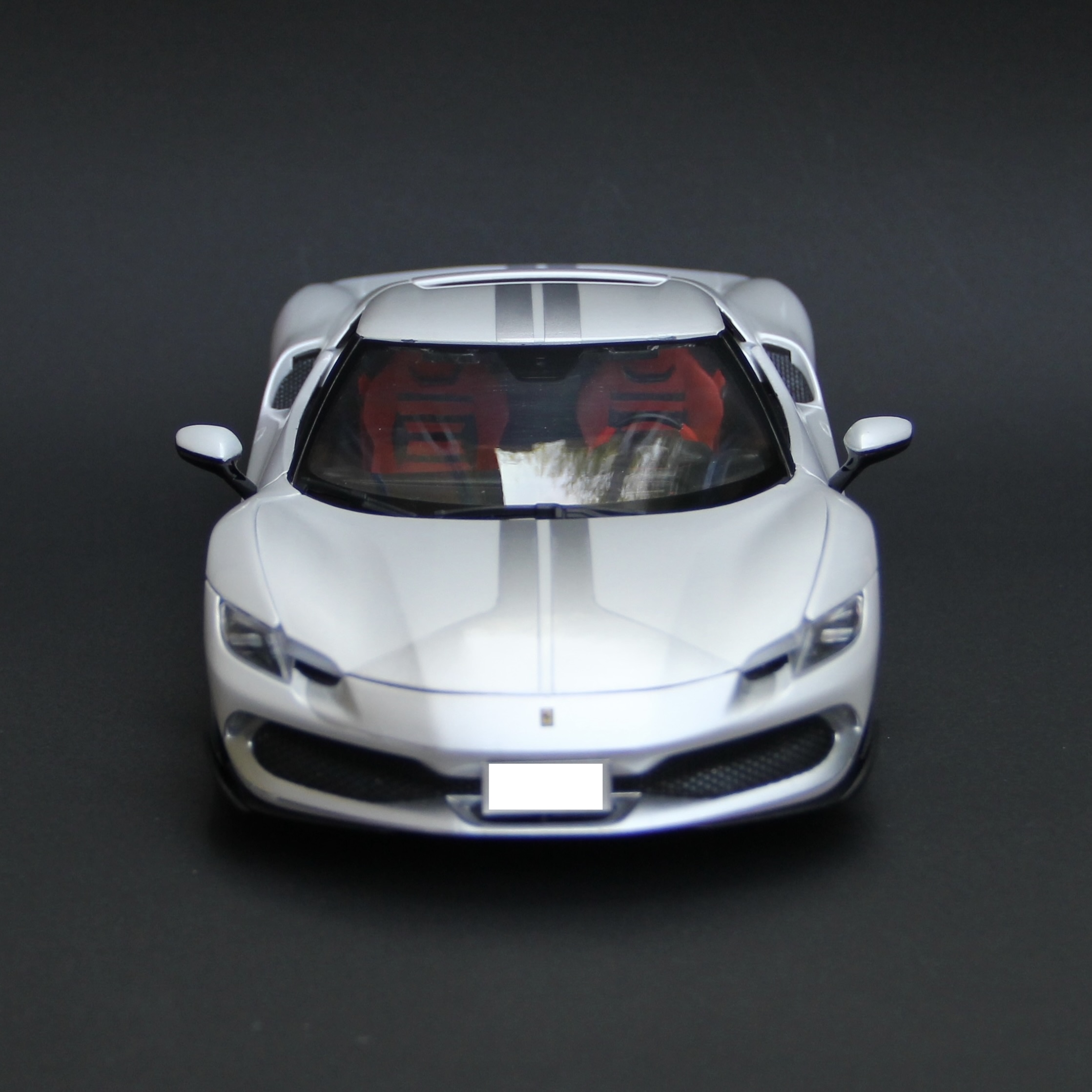 裏からセミグロスブラックでウィンドウを塗装。キットにマスキングシールが付属していて非常に助かりました。リアウィンドウは自分でマスキングをしてシルバーで塗装。