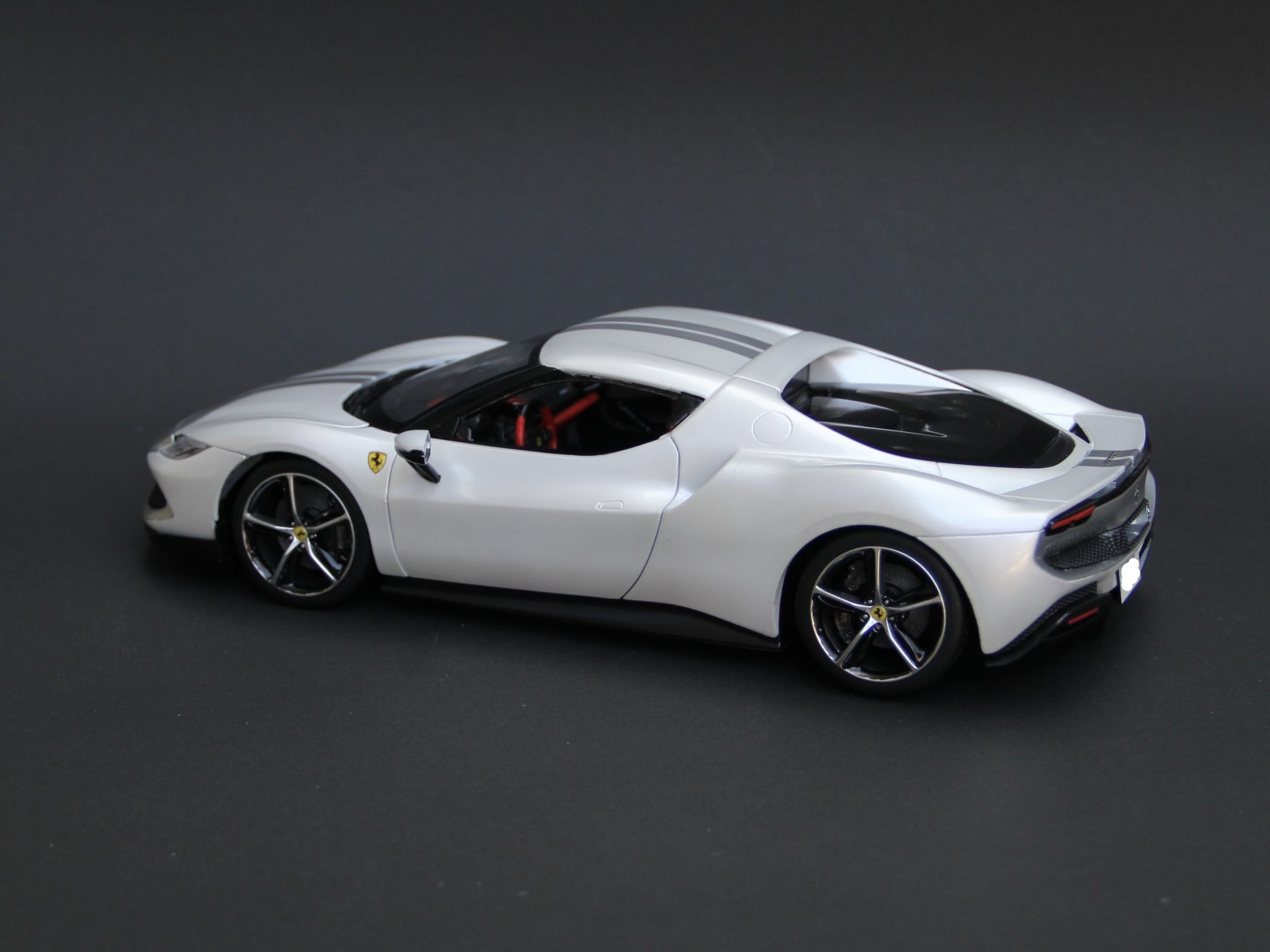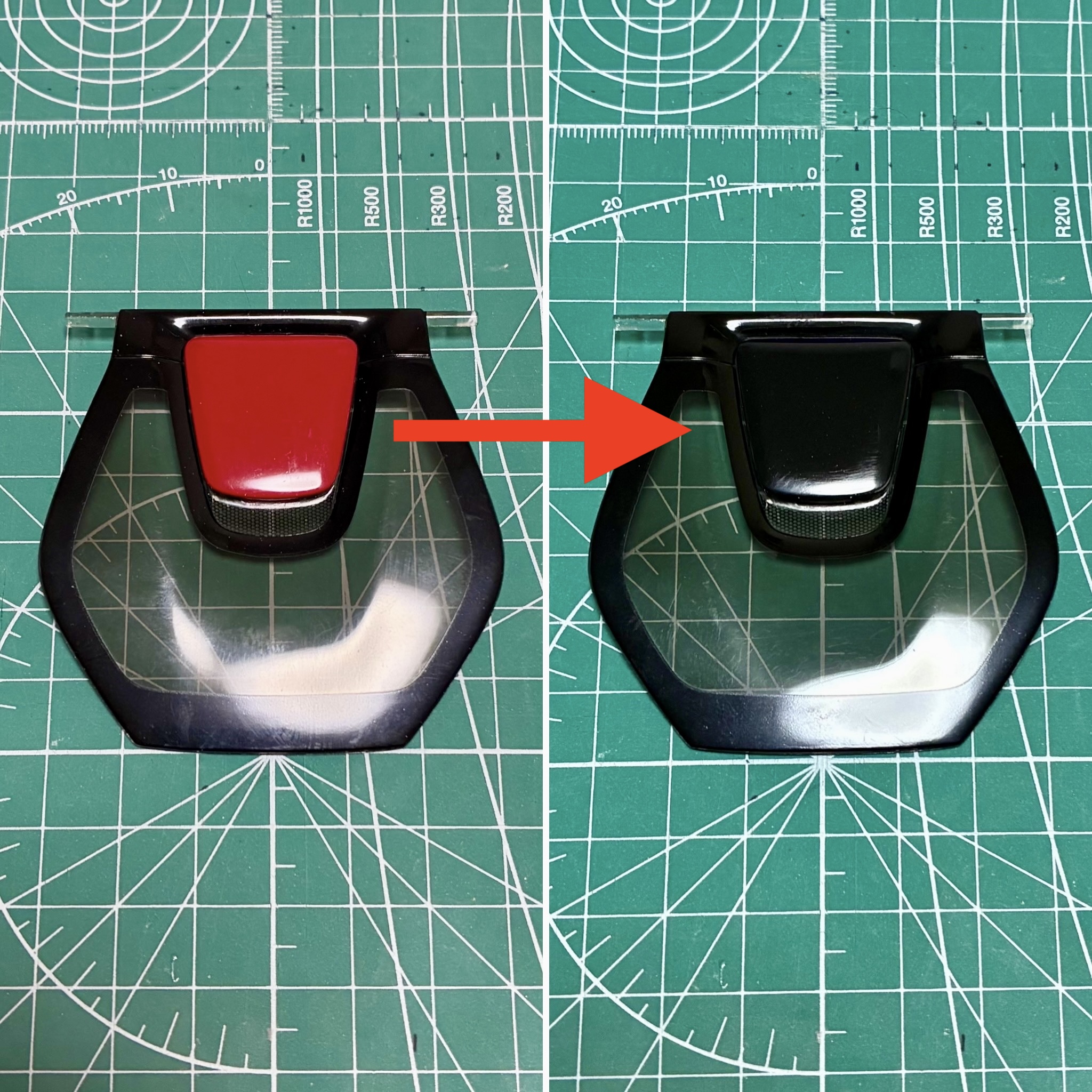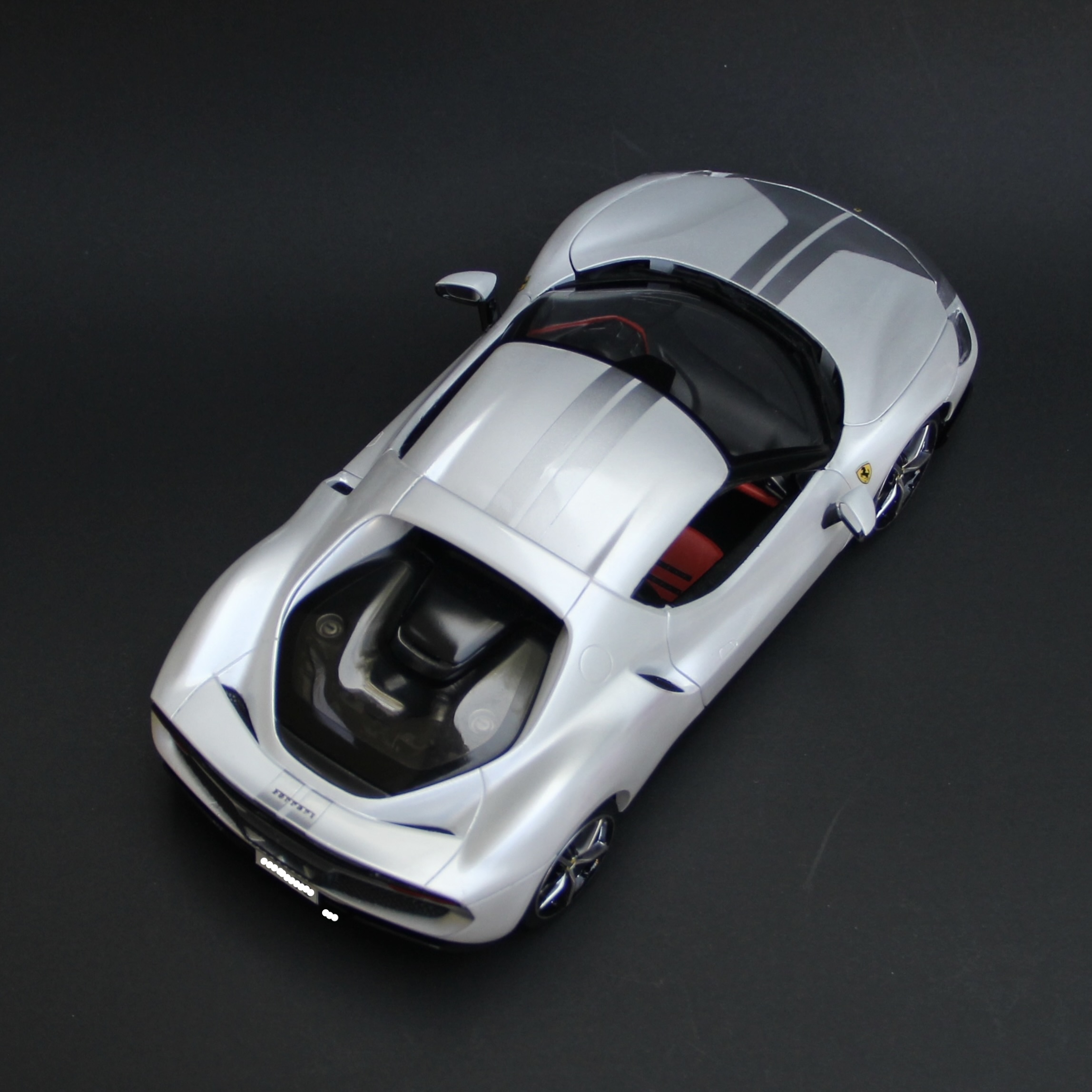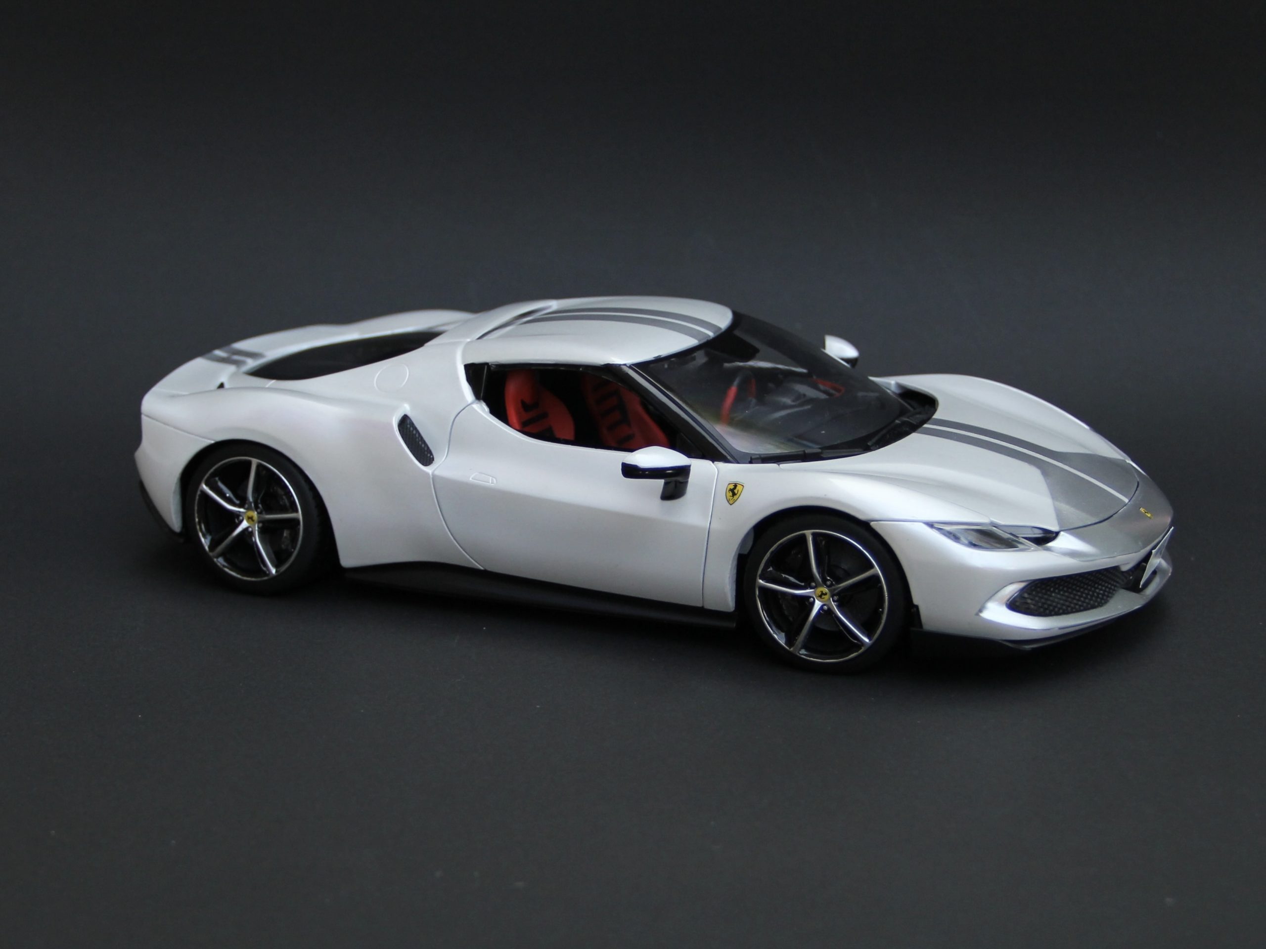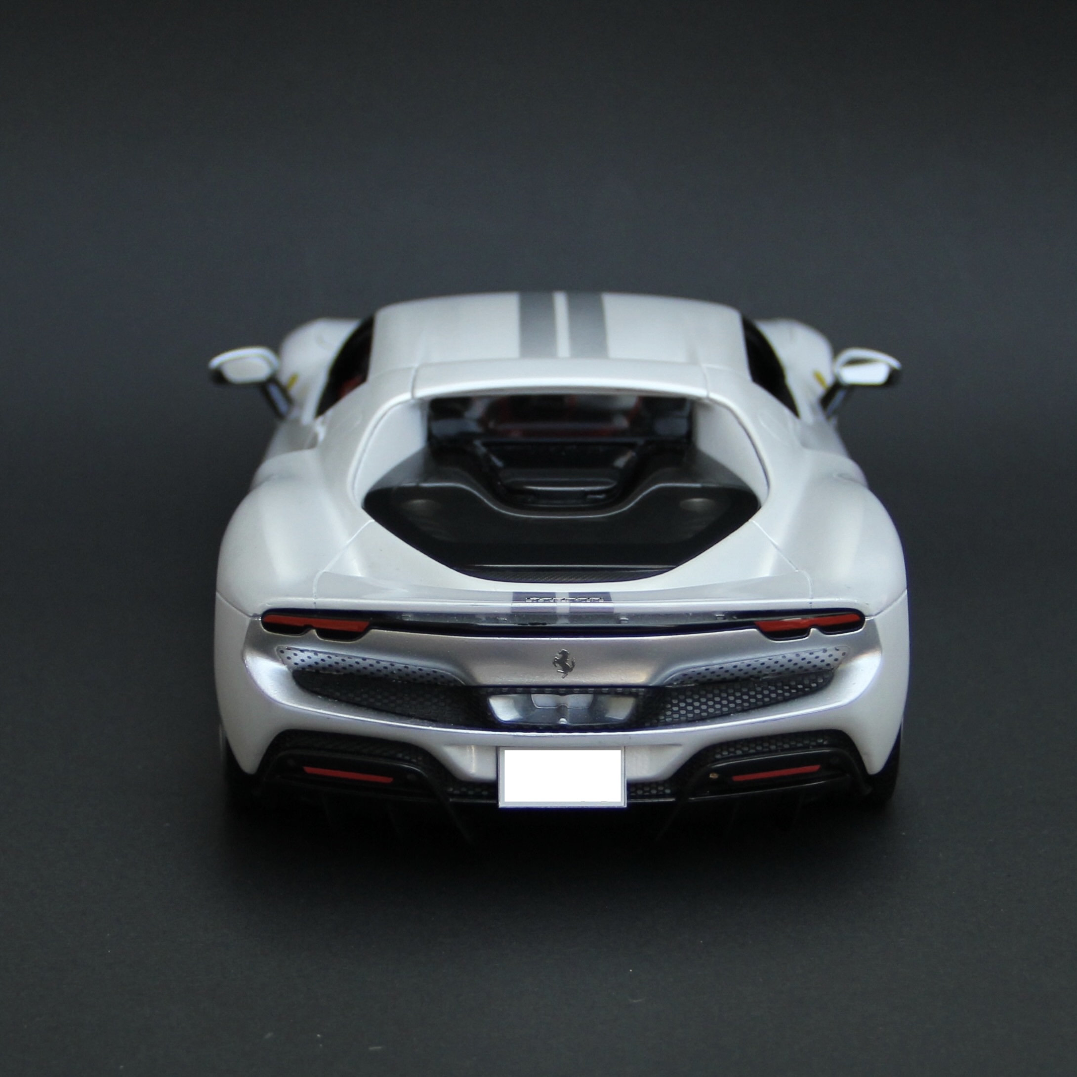 裏からセミグロスブラックでウィンドウを塗装。キットにマスキングシールが付属していて非常に助かりました。リアウィンドウは自分でマスキングをしてシルバーで塗装。
