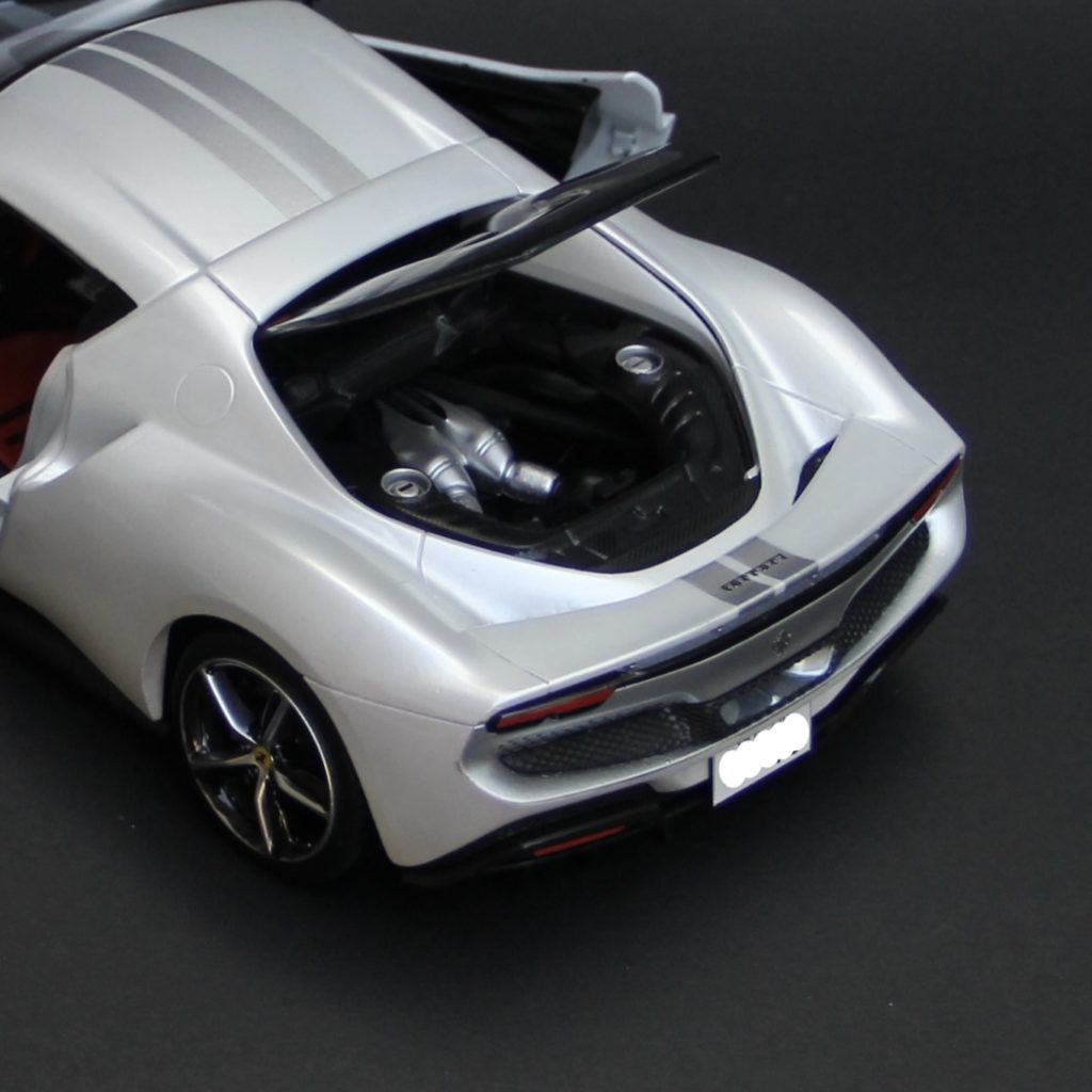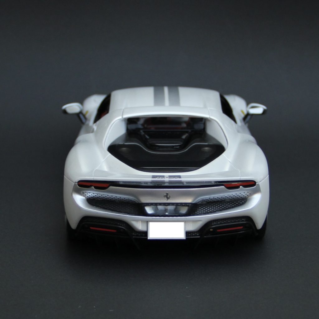 キットには「OFF ROAD」「TOYOTA」などのデカくて派手なデカールが付属しますが、依頼者様のご希望でこれらは使用せず、リアのバッジのみ使用しました。
