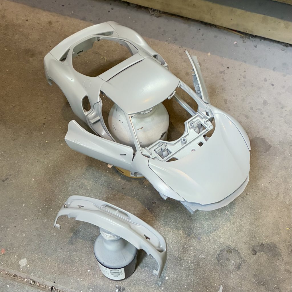 ①ボディ:クレオスGX1クールホワイトでリペイント