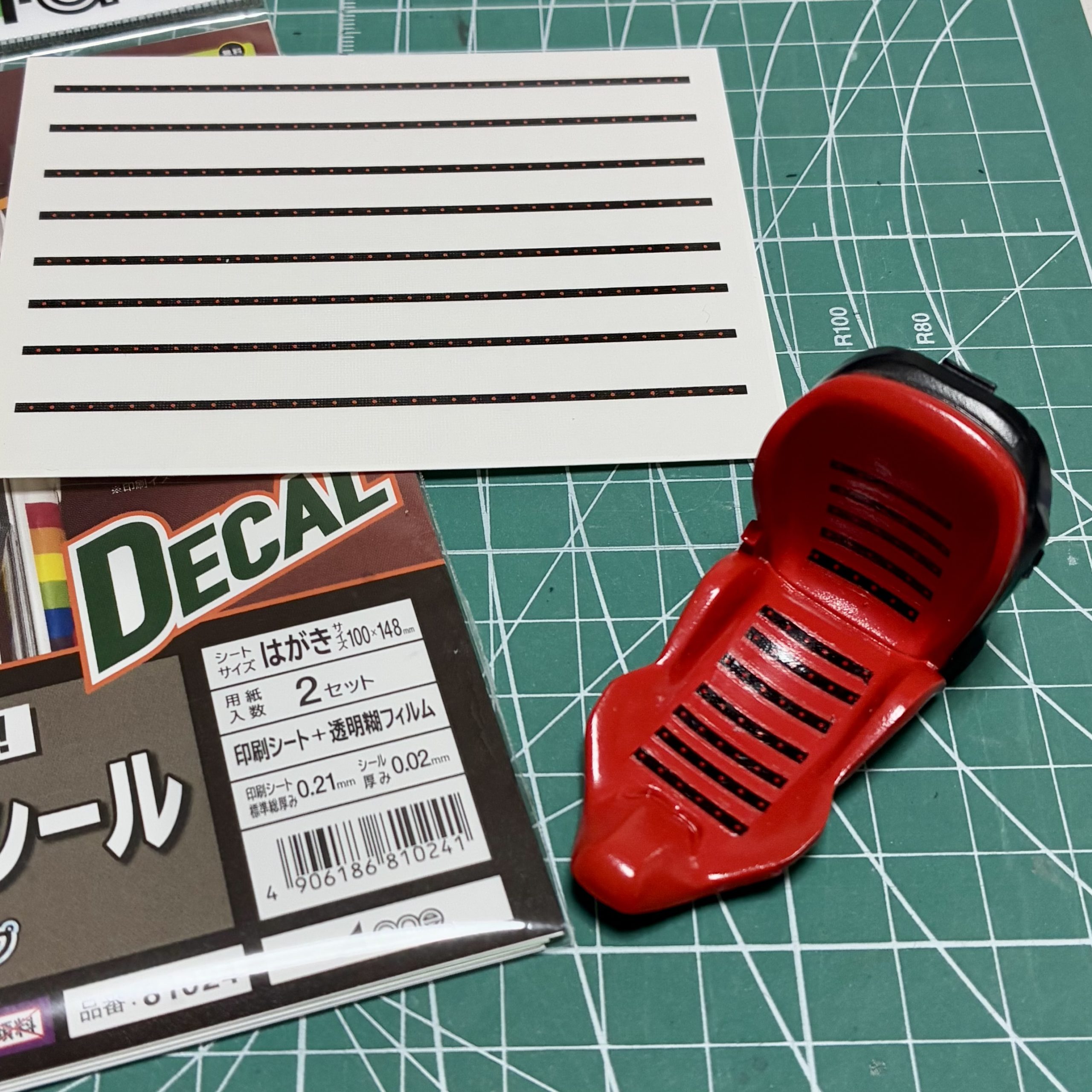 デカールのニスが全部繋がっているので、マークに沿ってキチンと切り取る必要があります。実写写真を参考に貼り付けましたが、車体上面ははっきり見える写真がないので、けっこう想像が入っています。