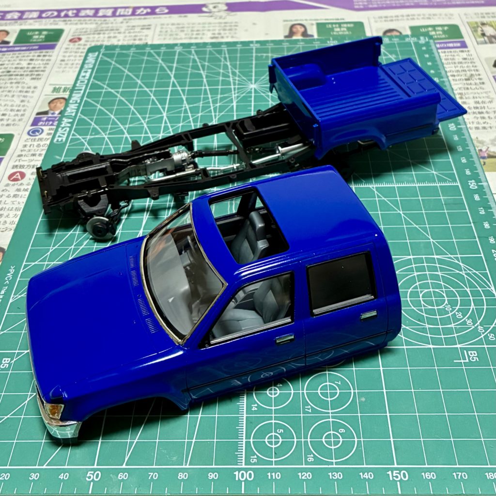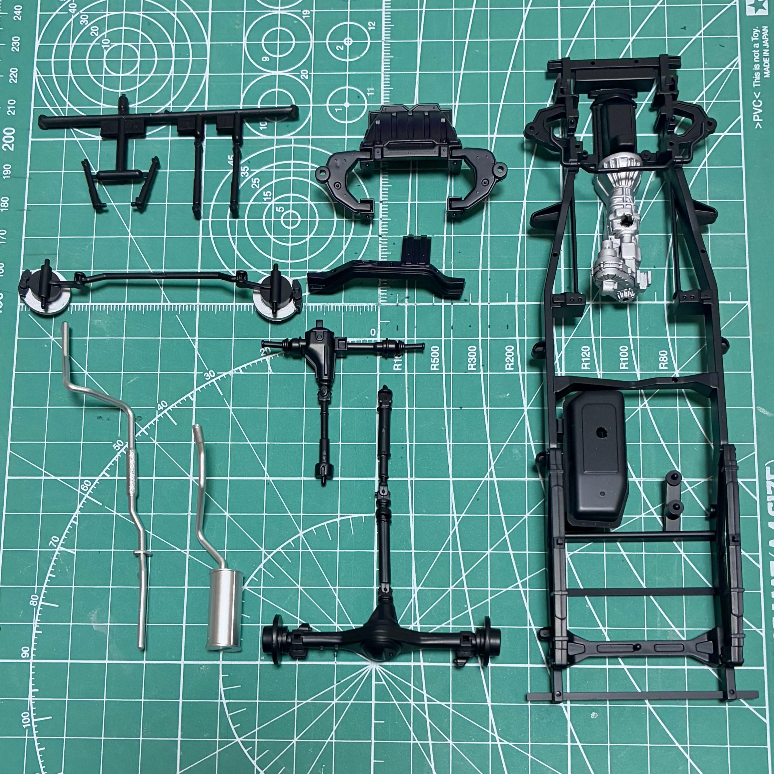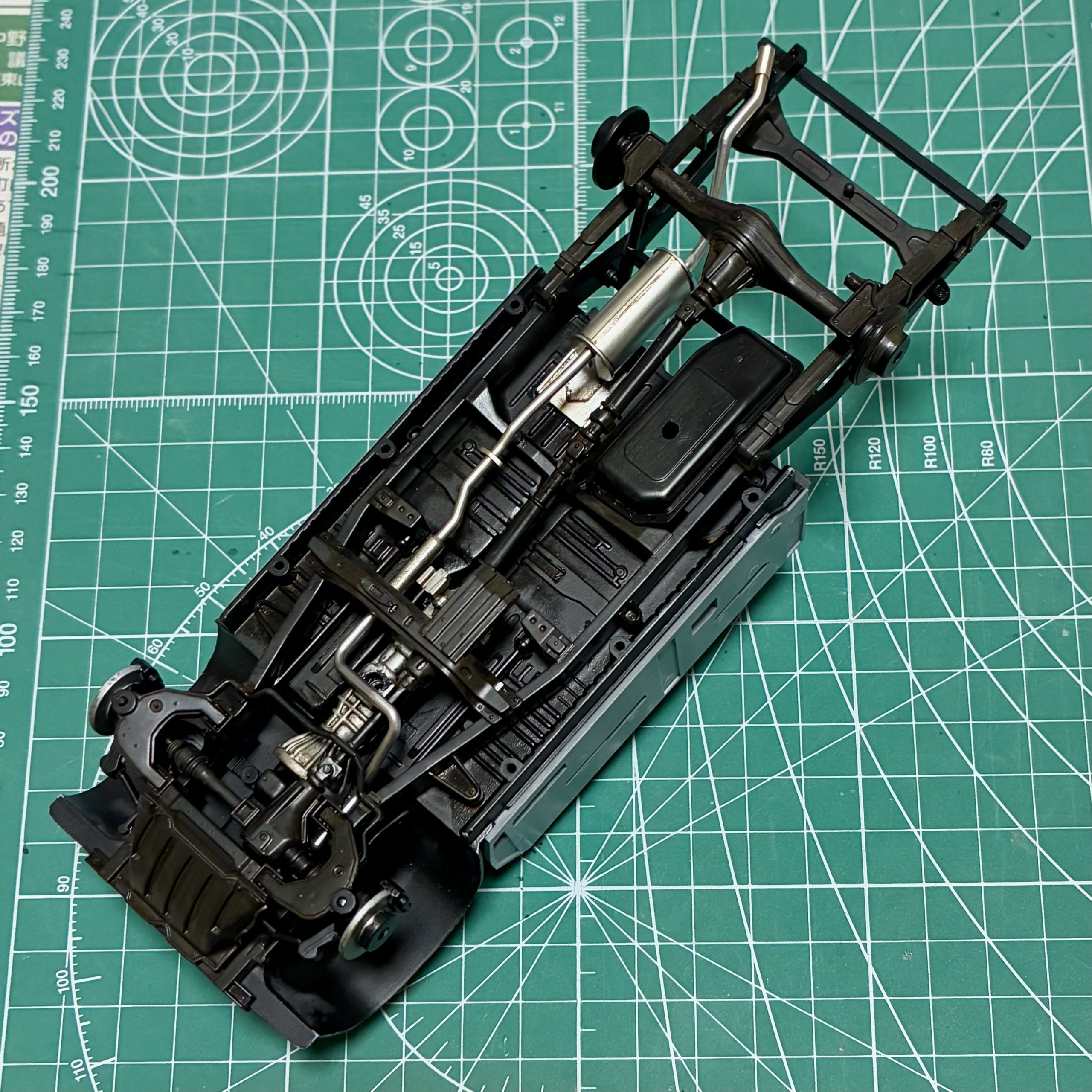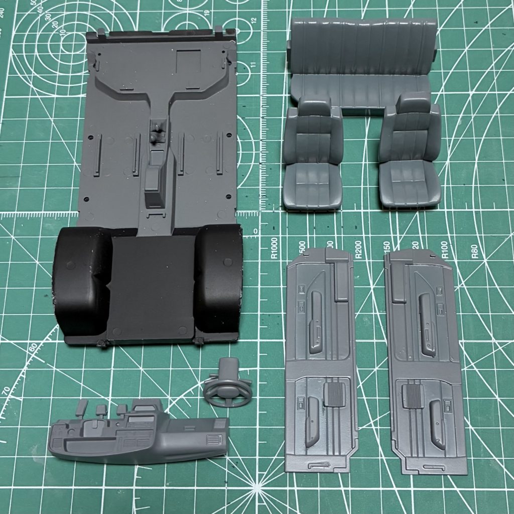 「DAK43」というのがメーカー名のようですが、ネットで検索しても全くヒットしませんでした。キットの感じとしてはやはりフランス製のようですが、以前製作した40系と比べても明らかにクオリティが低くアマチュア製品ではないかと思います。タイヤもホイールと一体成形のレジン製で、カーモデルというよりAFVに近い感じです。
