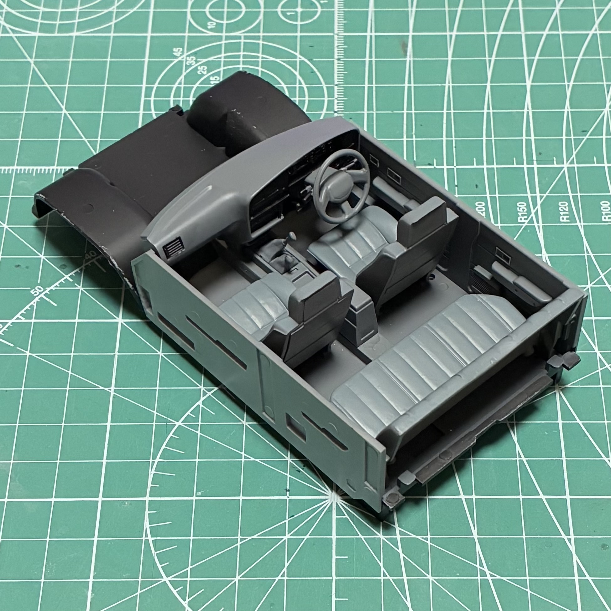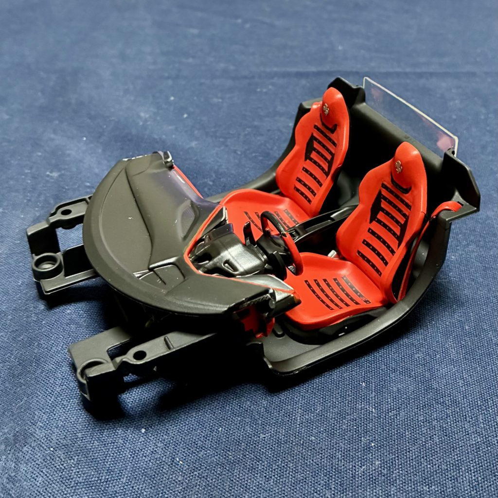 ②内装:クレオス40ジャーマングレー・タミヤTS85ブライトマイカレッドなどでリペイント