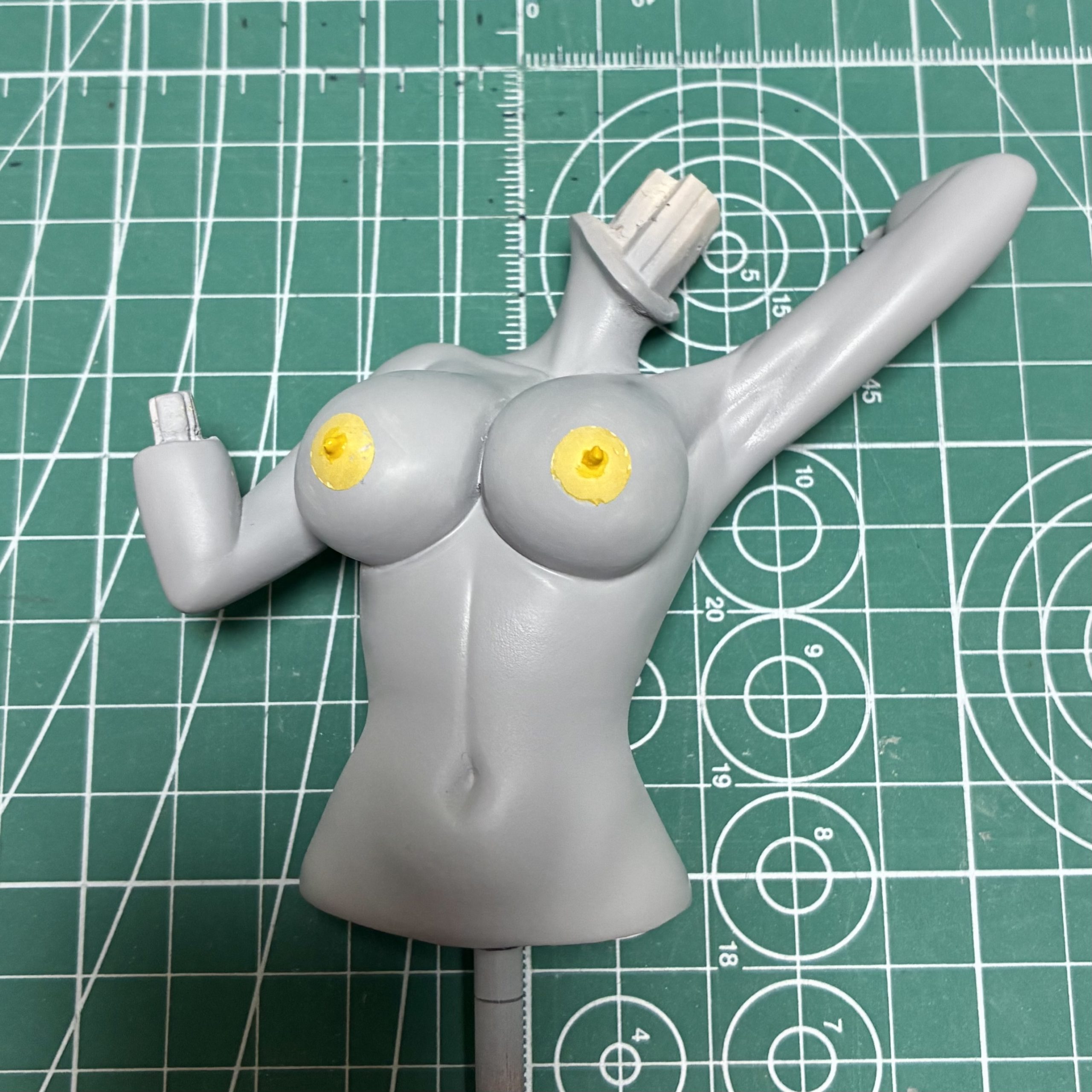ボディの表面処理が完了したので、ポリパテで乳輪と乳首を造形。