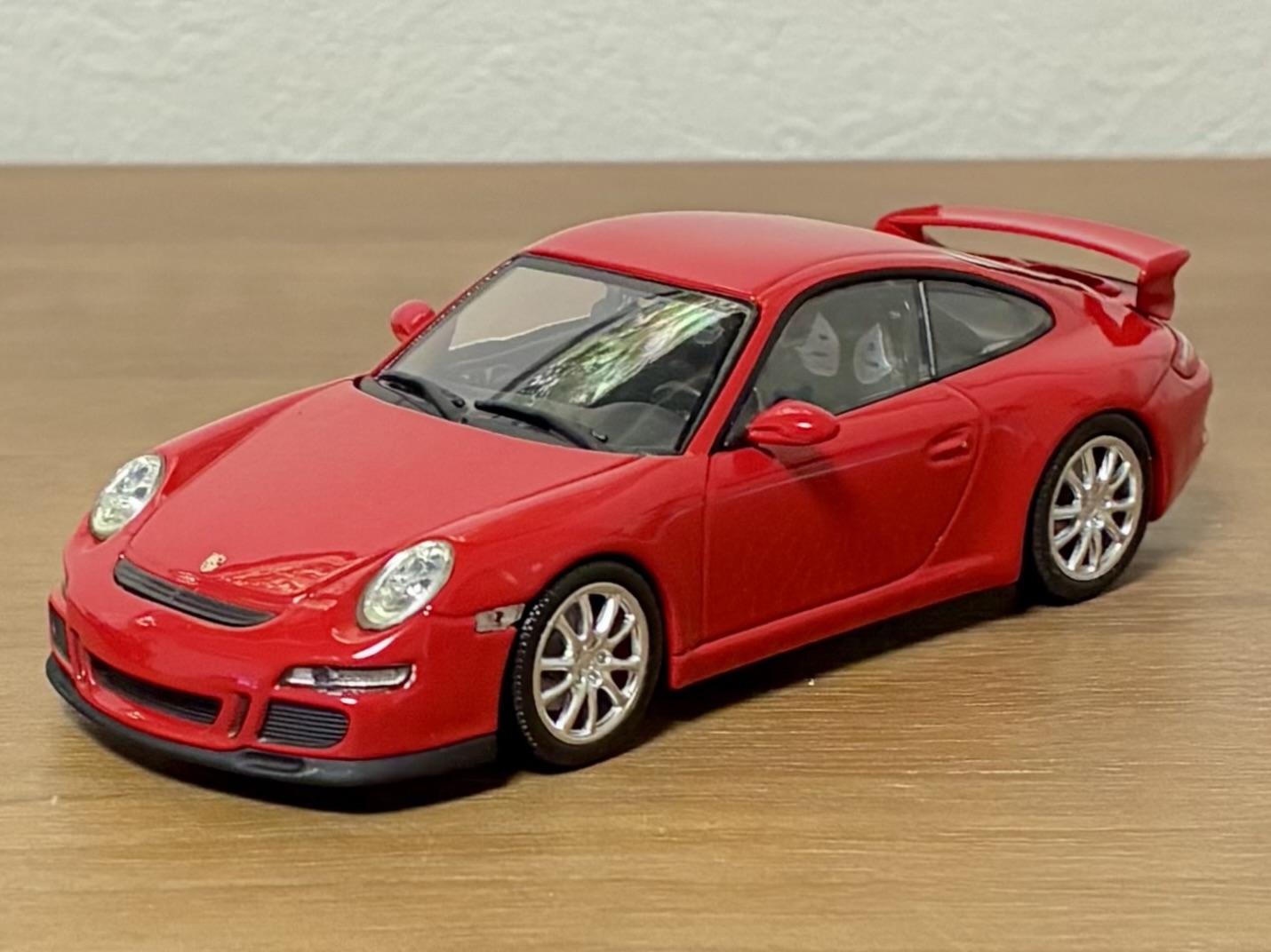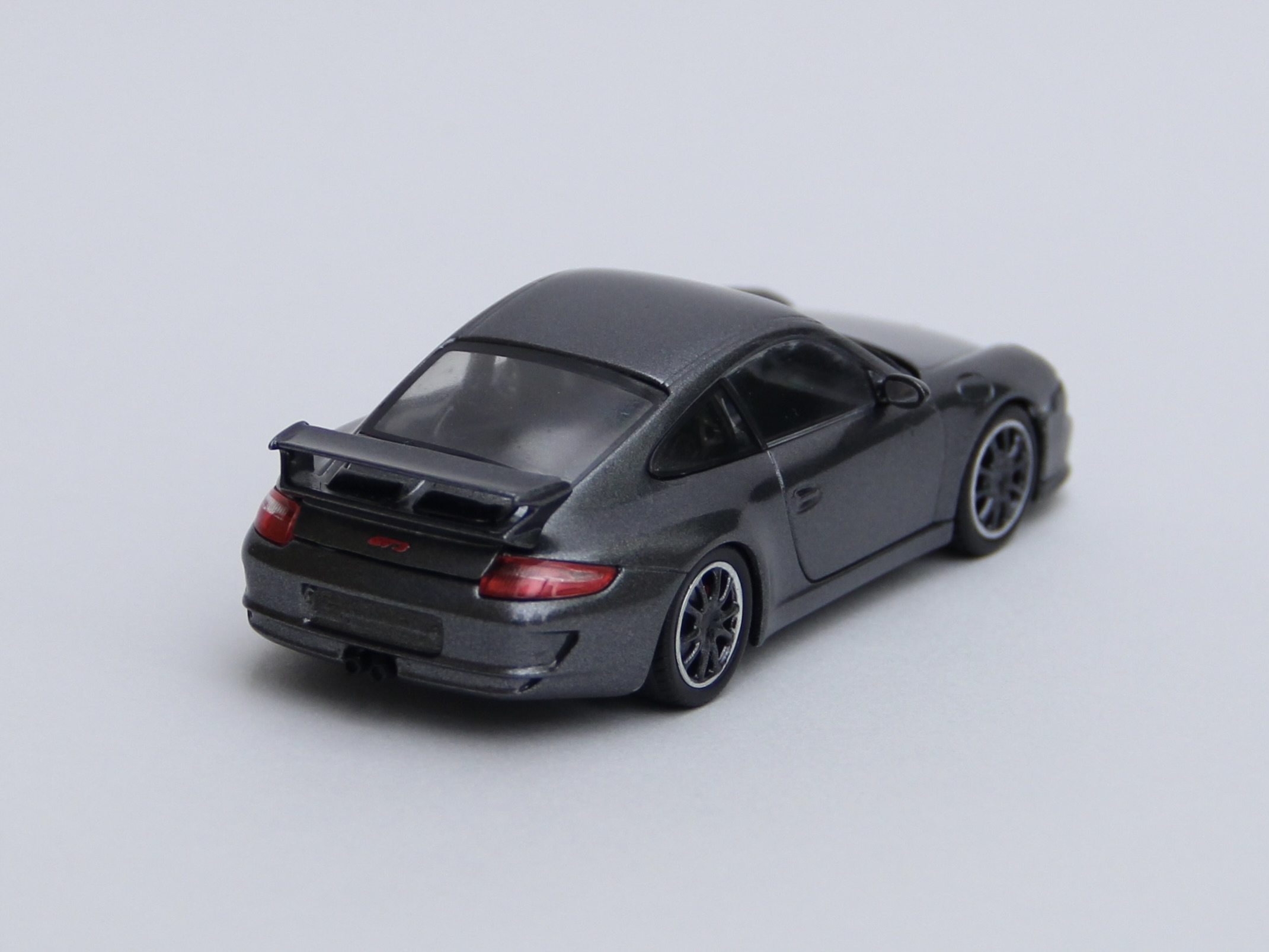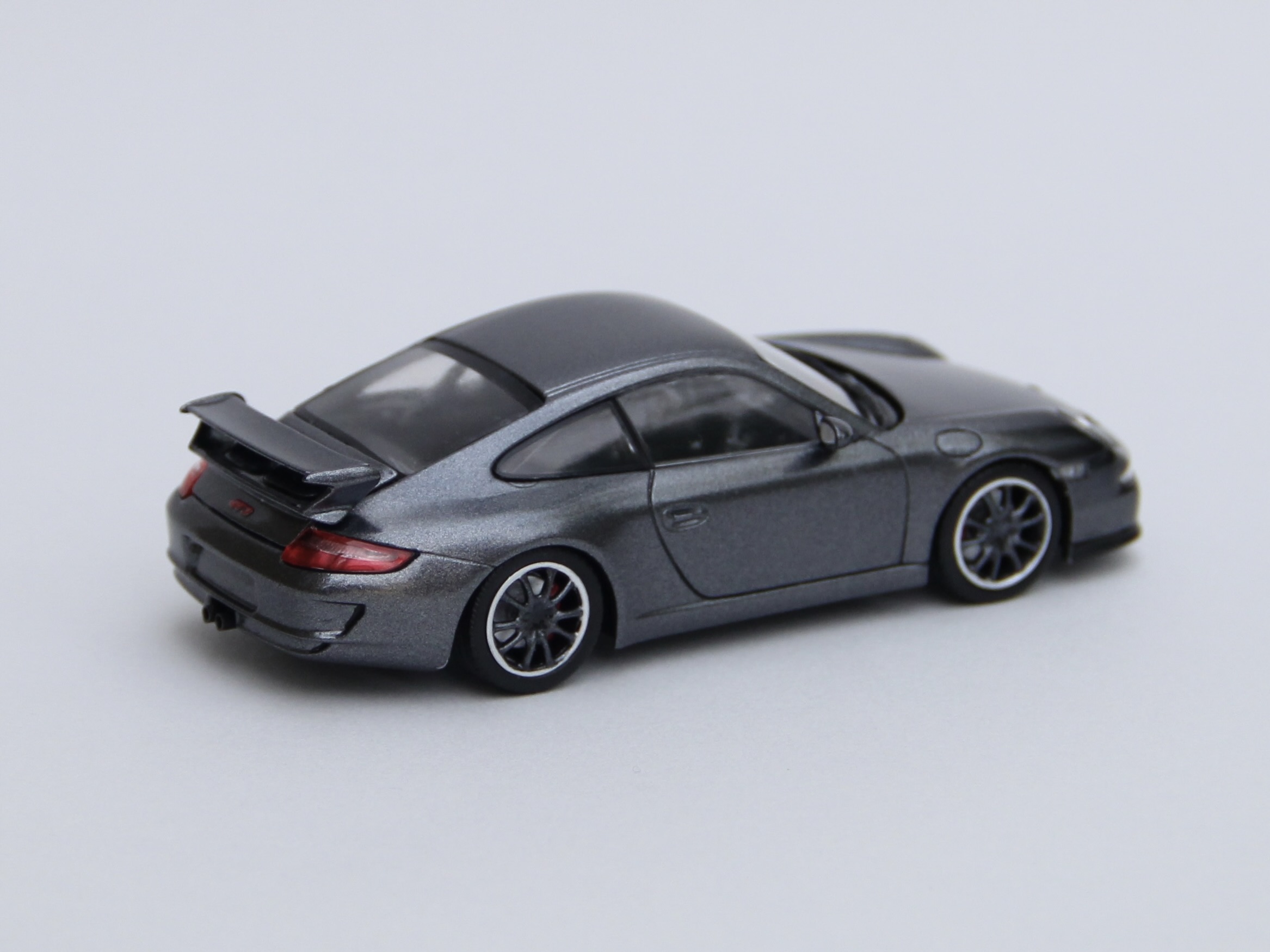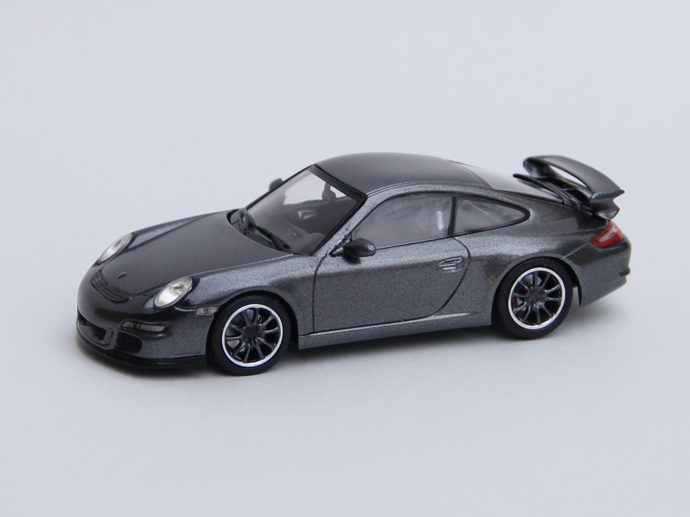 次の依頼品はポルシェ911GT3。レッドのボディをメタリックブラックににリペイントしました。ポルシェといえば何といっても911ですが、初代の901型、ターボ化された930型、4WDのカレラ4の964型、最後の空冷エンジン車の993型、完全フルモデルチェンジされた996型、ボディデザインが変更された997型、7代目 991型、8代目 992型と進化してきましたが、車名は常に「911」ですが、形式番号が同じ9で始まる三桁で新しいモデルの番号が若くなったりして混乱します😅😅😅