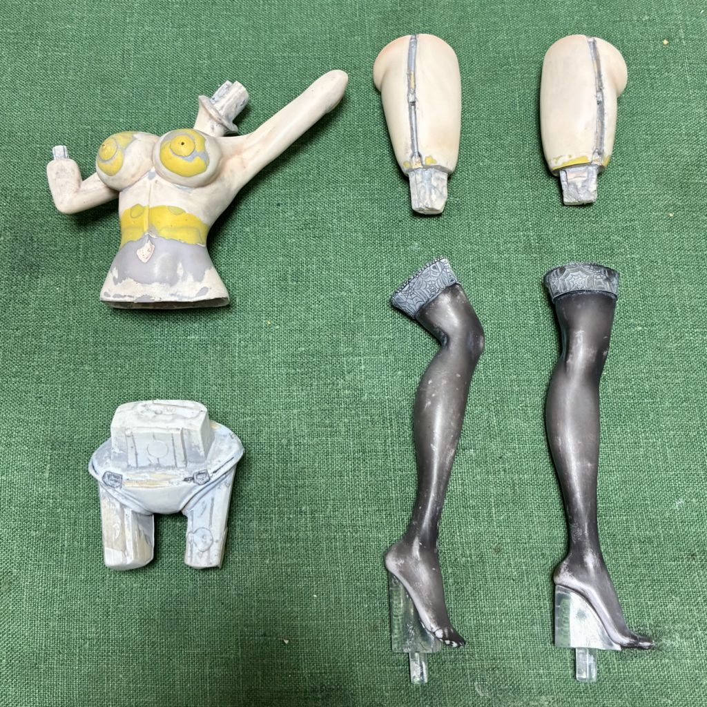 できるだけ丁寧に分解しましたが、ストッキングのレース部分はパーツが薄くてちぎれてしまったので、接着しなおしてきれいに補修をします。
