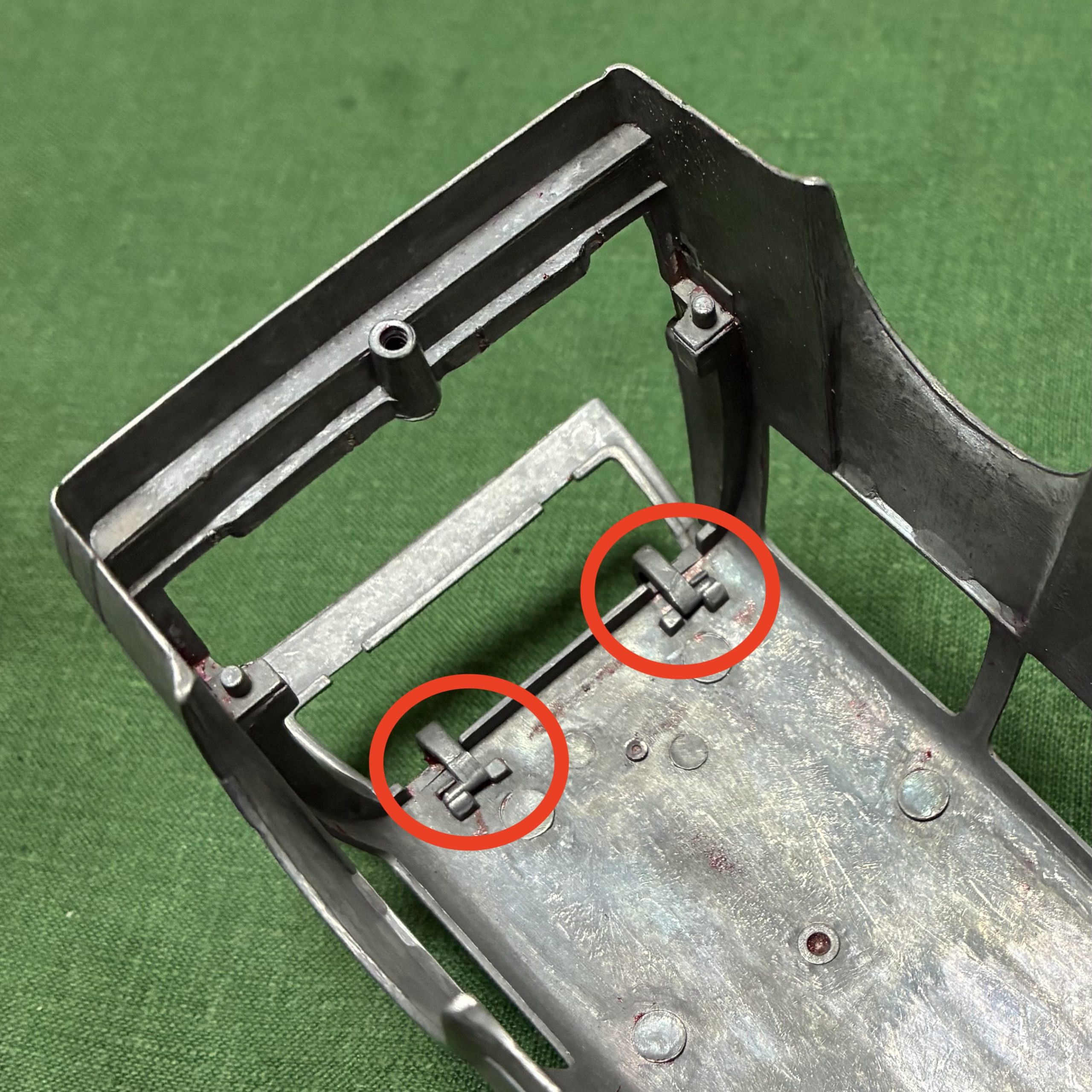 リアの上ハッチのヒンジはハメ殺しになっているので、このまま塗装しなければなりません。