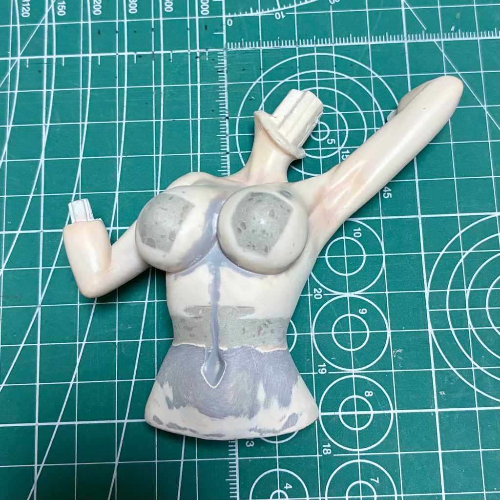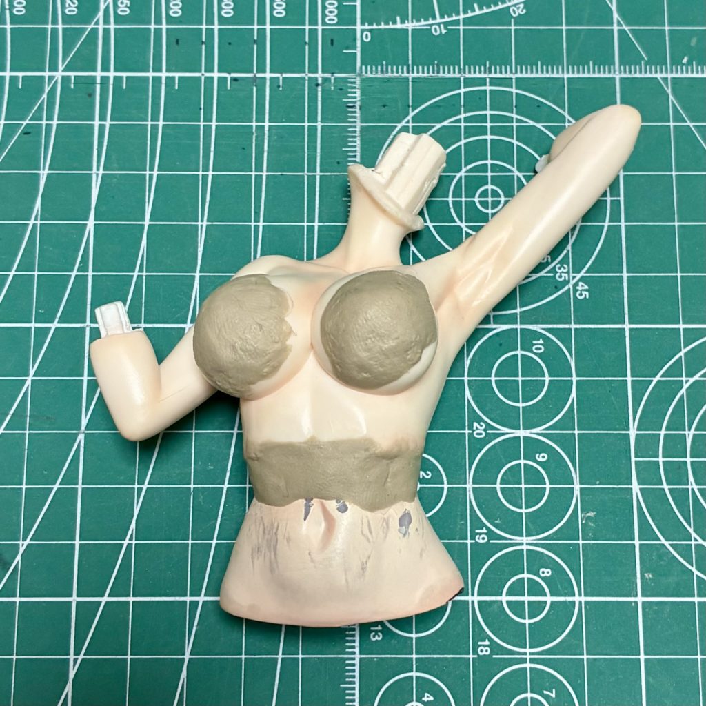エポキシパテはなぜかプラスチックやPVCにきちんとなじまず接続線が出てしまうので、ポリパテで仕上げます。