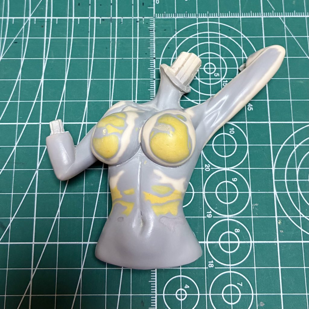 最近のフィギュアのセオリー通り色分けされた部分は全て別パーツになっていますが、かなりガッチリ接着されていてここまで分解するのにかなり時間がかかりました。
