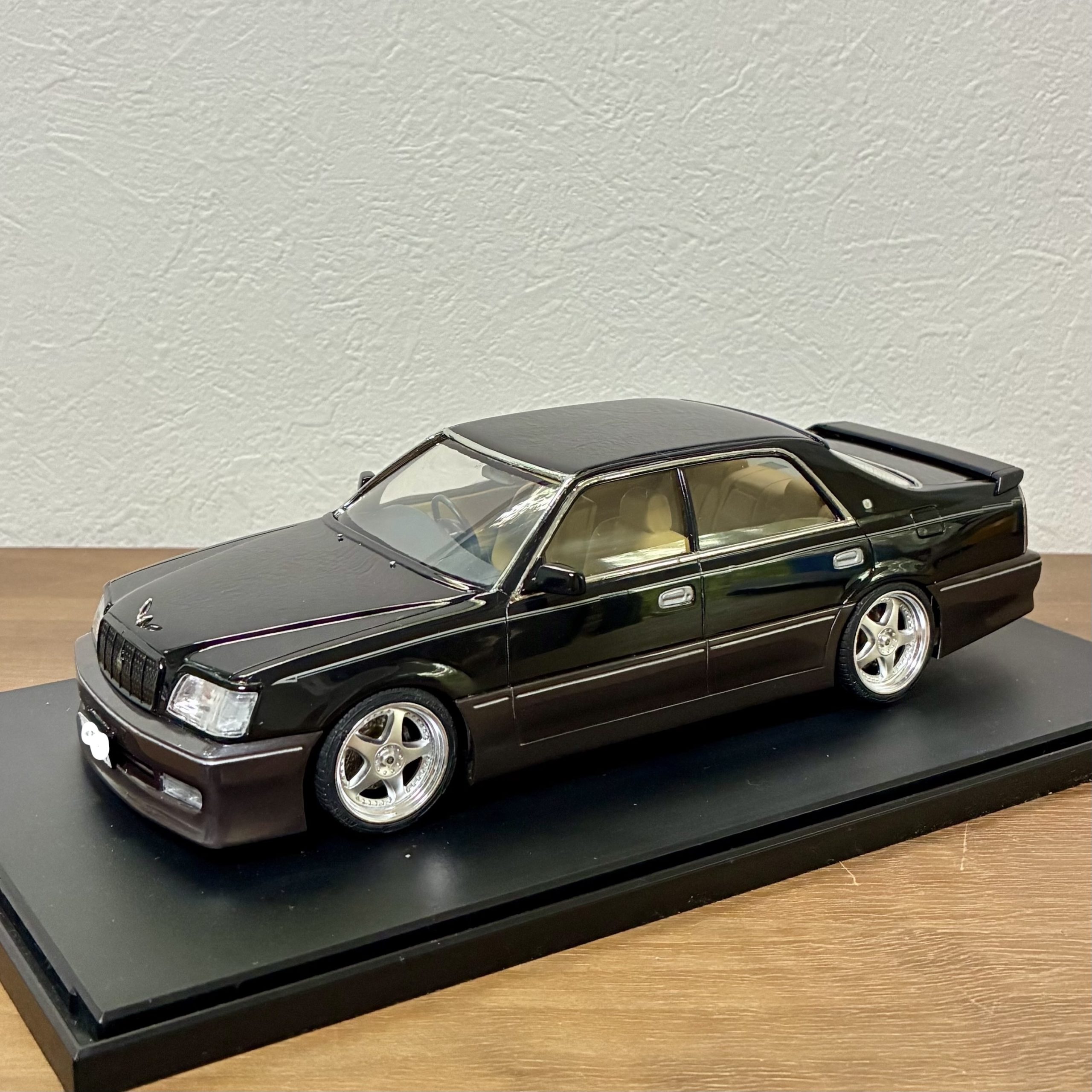 次のご依頼品はアオシマの「1/24 スーパービップカー シリーズ」のマジェスタです。2代目 S150型マジェスタのキットにローダウンパーツ、インチアップホイール、エアロパーツなどを追加したものです。